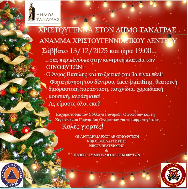 Άναμμα Χριστουγεννιάτικου δέντρου στη Δημοτική Ενότητα Τανάγρας