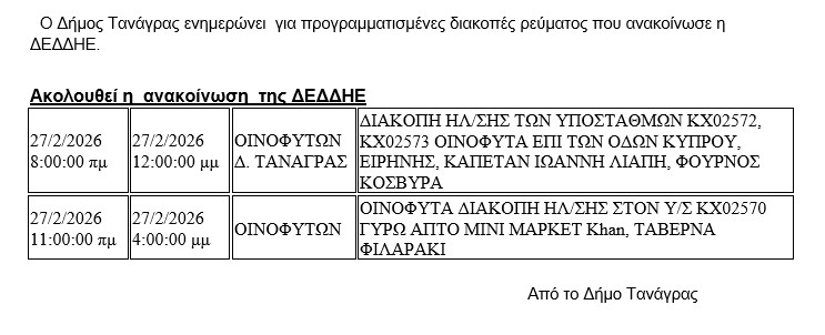 ΤΑΝΑΓΡΑΣ (σε όλες τις Δ.Ε. και σε όλους